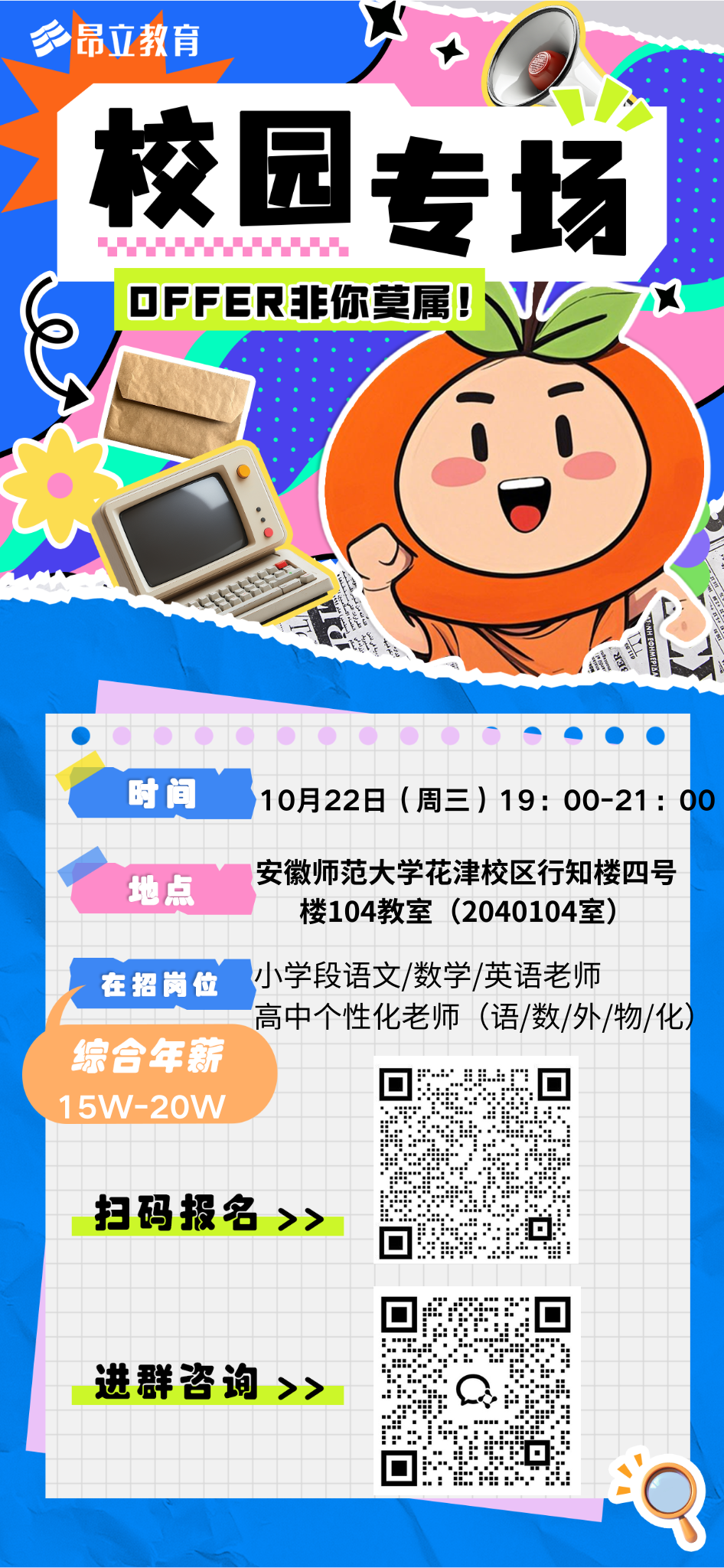上一条:【10月22日宣讲会】安庆英科医疗有限公司2026校园招聘宣讲会 下一条:【10月21日宣讲会】奇瑞汽车股份有限公司校园招聘宣讲会