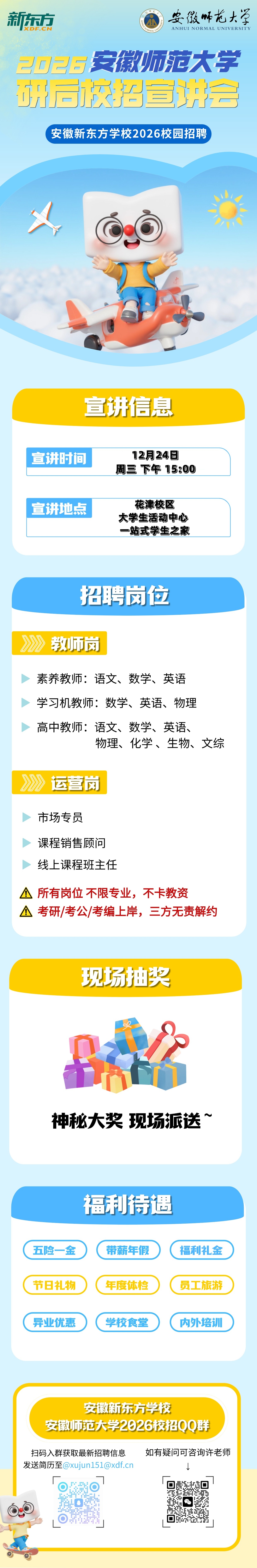 【12月24日宣讲会】安徽新东方学校校园研后专场宣讲会