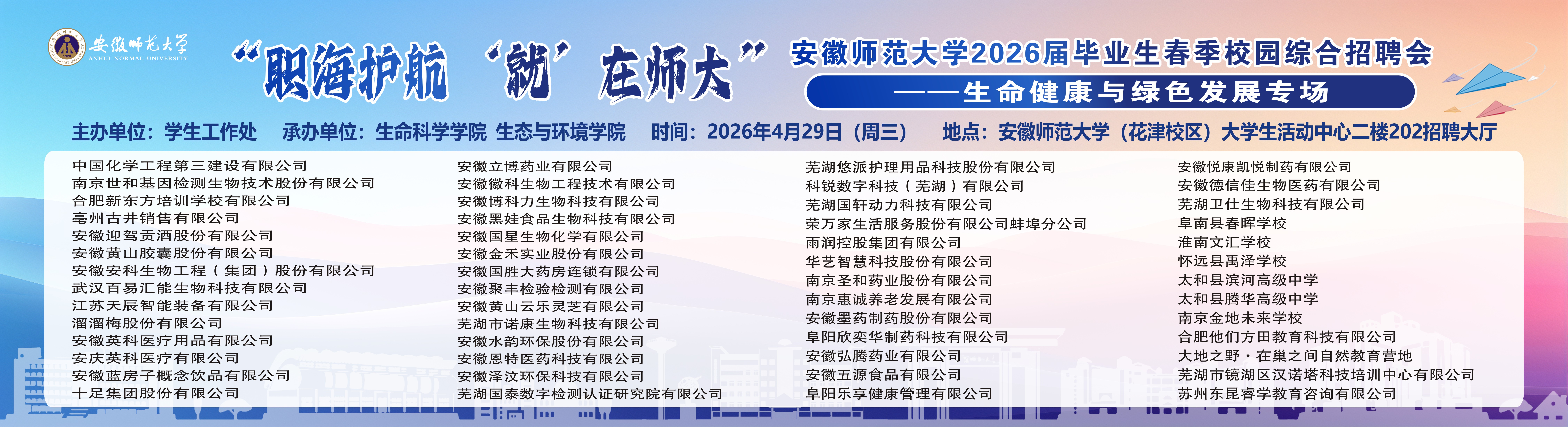 【4月29日双选会】“职海护航 ‘就’在师大”安徽师范大学2026届毕业生春季校园综合招聘会——生命健康与绿色发展专场信息一览表