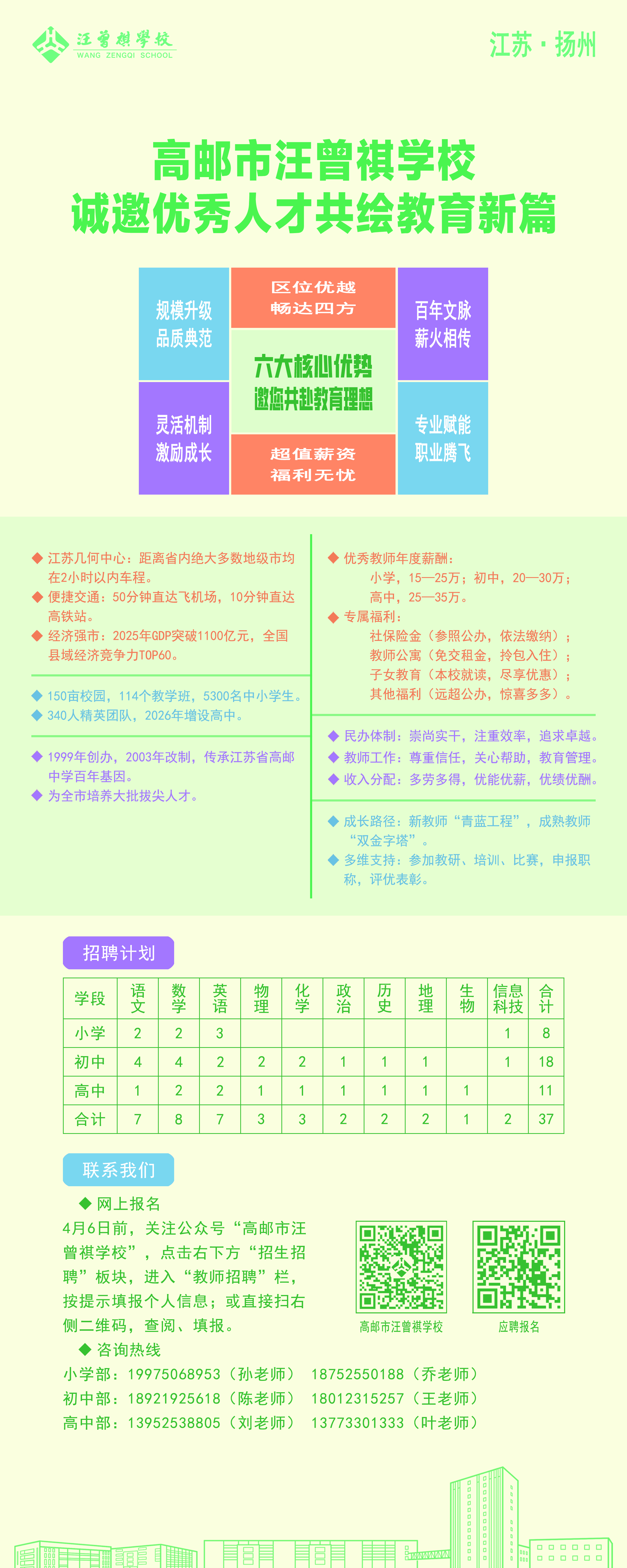 【教师招考】高邮市汪曾琪学校2026届校园招聘简章