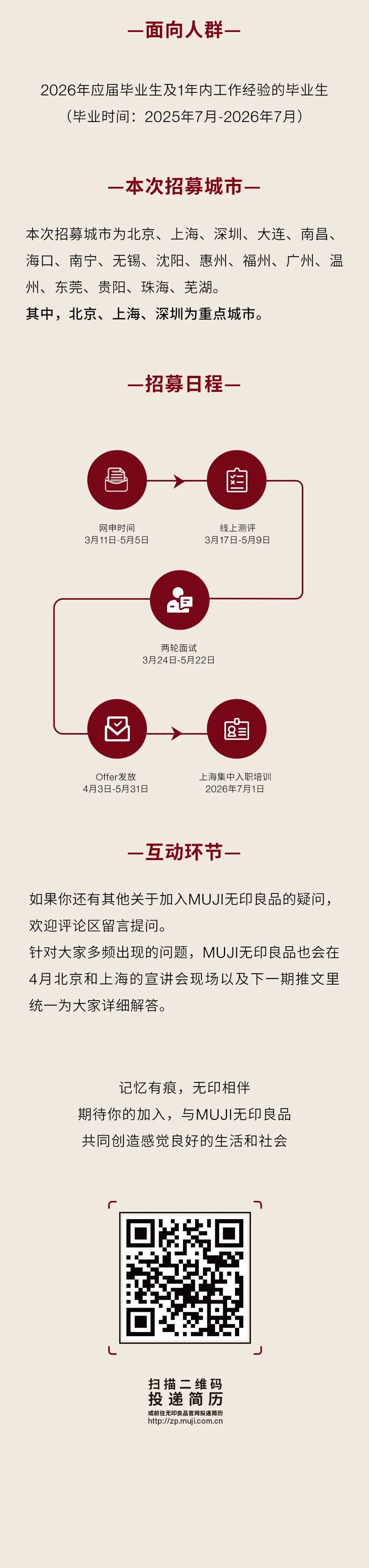 【综合类招聘】无印良品(上海)商业有限公司2026届校园招聘简章